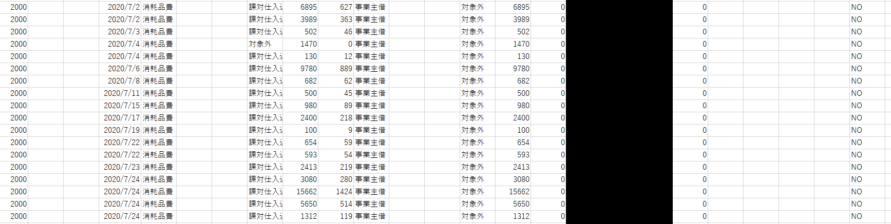 カード明細やレシートを入力するときの相手勘定は、役員借入金や事業主借にしています。