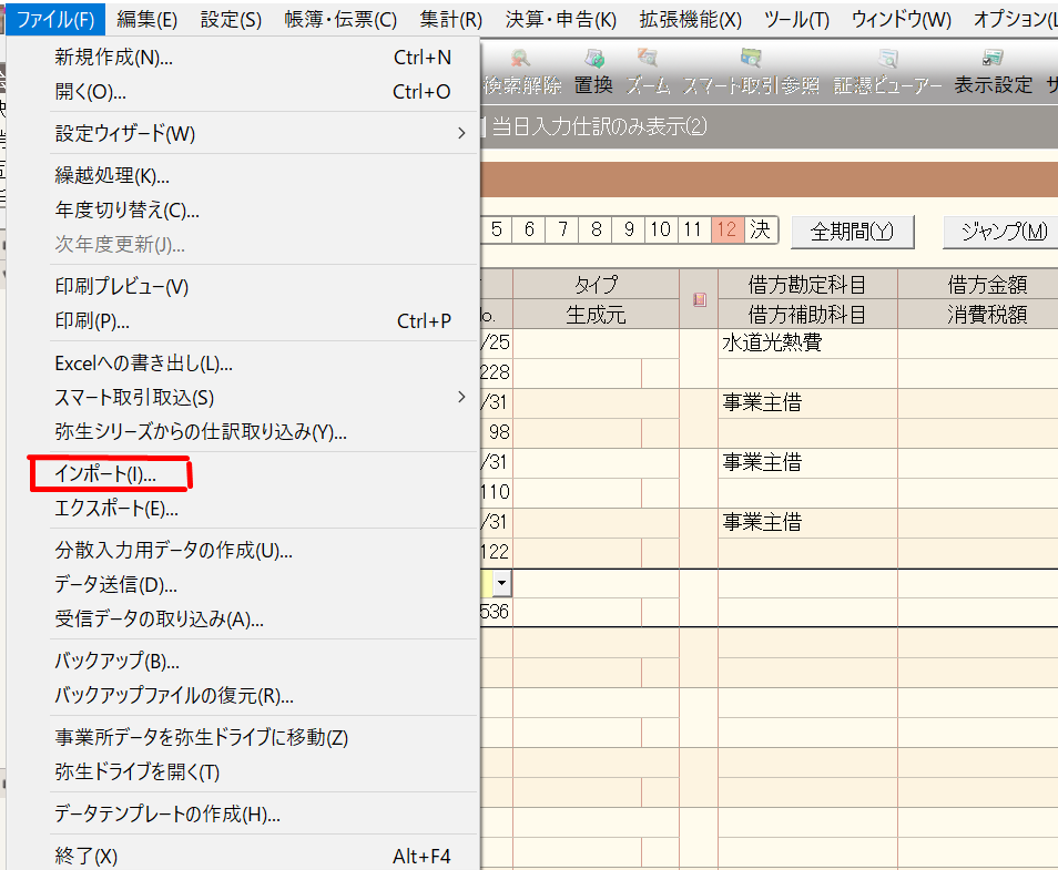 弥生会計を使っているとインポート機能は便利です。