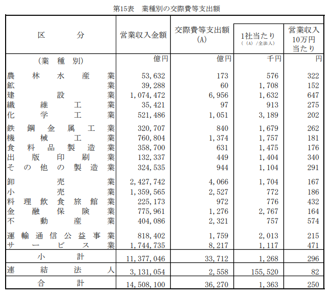 ホスト、建築関係、不動産関係、金融保険業など、仕入れが無くその人だからこそ収入が上がる業種や大きな金額が動く業種は交際費が多いです。