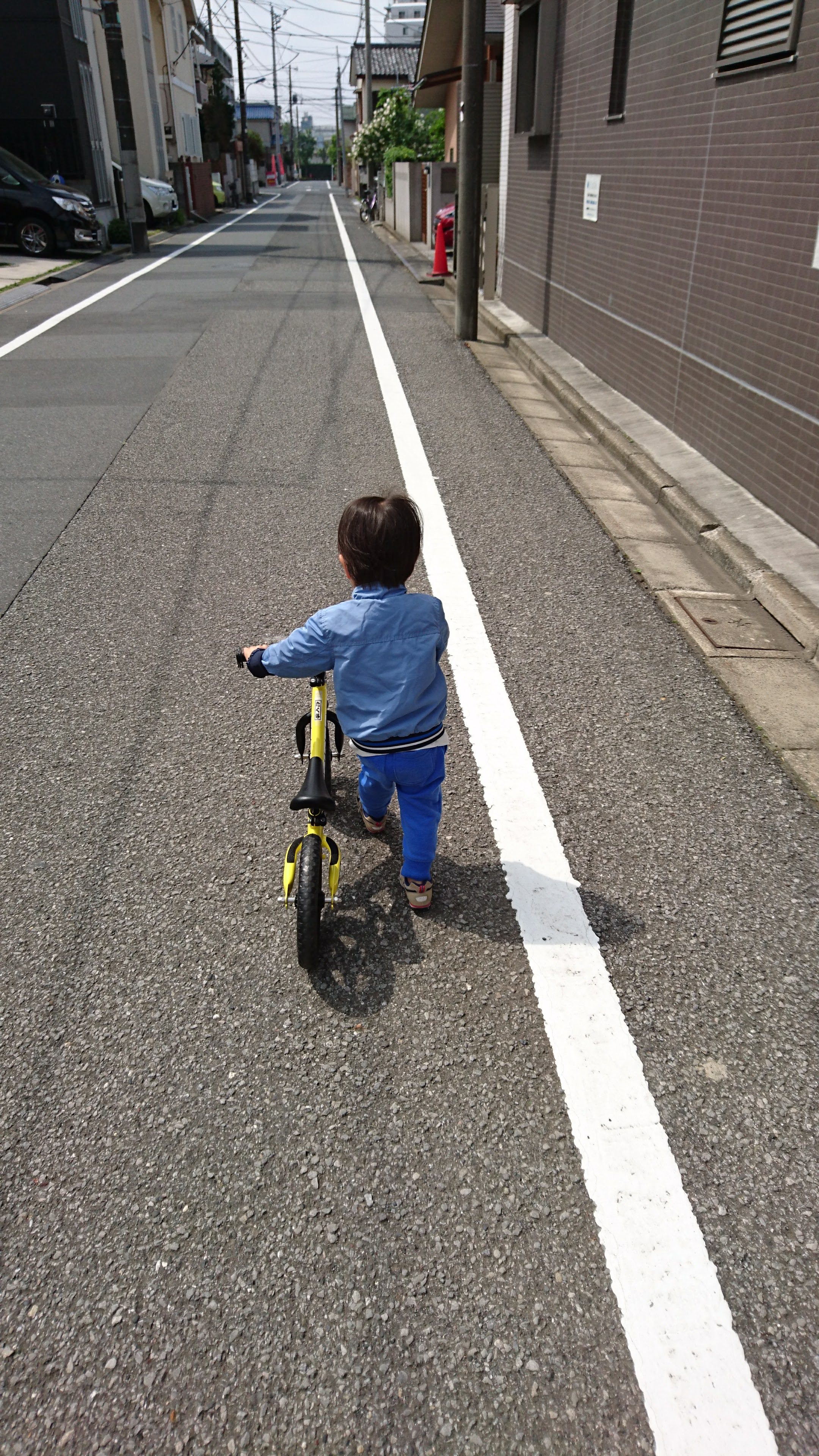①については、自転車はストライダーより重いのでハンドルを取られると転びそうになるし、方向転換は簡単にはいきません(ストライダーに比べて)