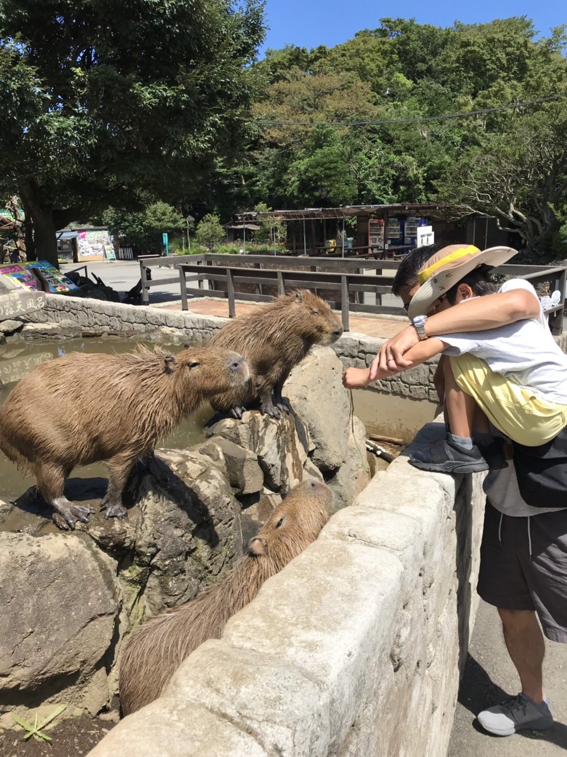 カピバラのエサやりは、怖かったのか及び腰でしたが・・(笑)