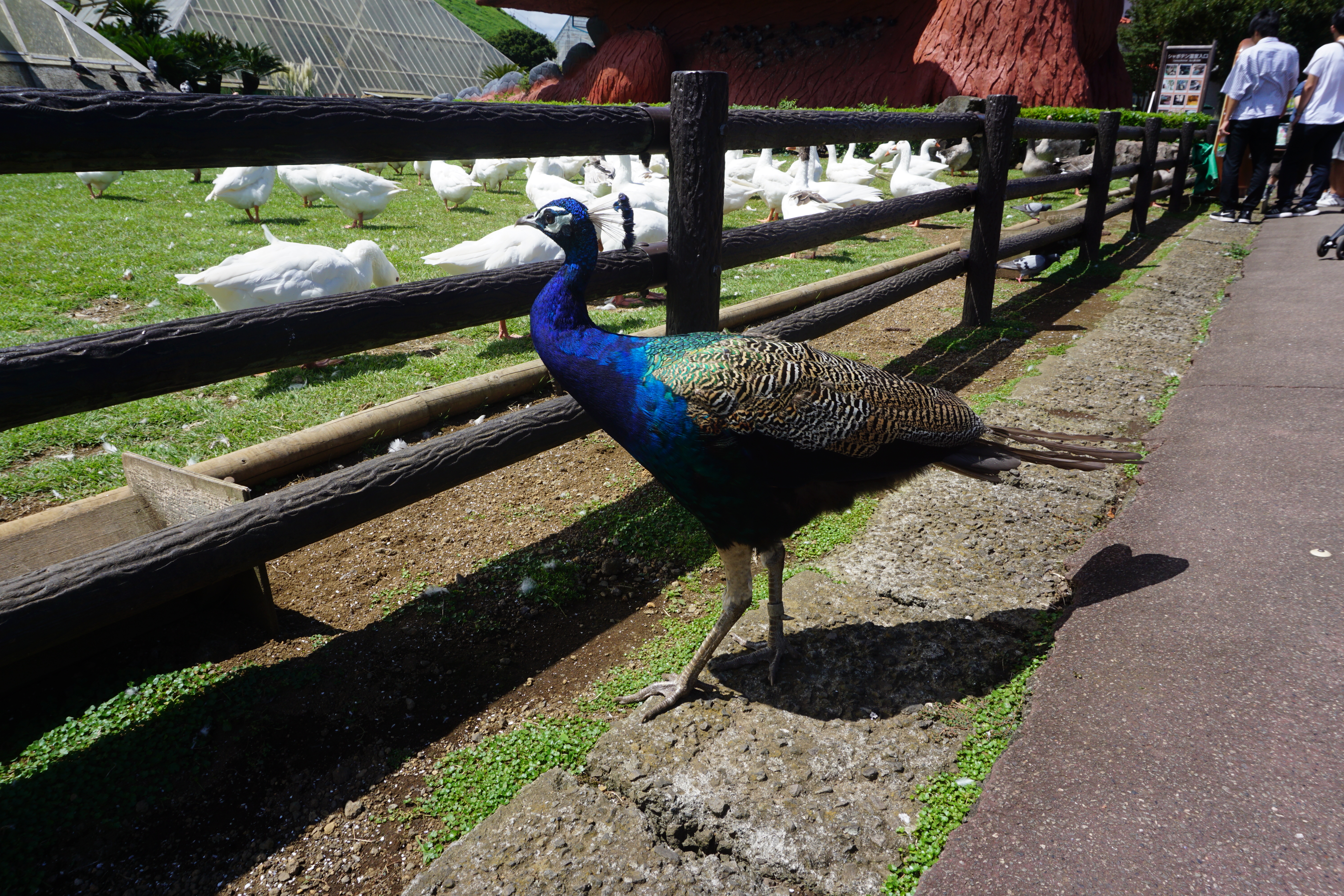 クジャクが柵の外に放し飼いでした。
