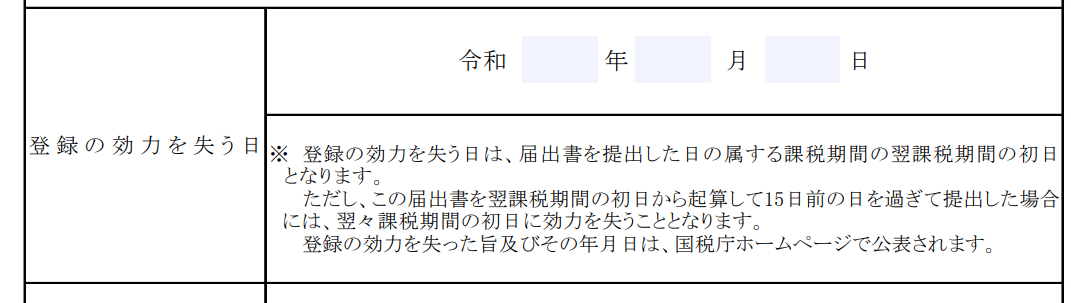効力を失う日は提出した日ではなく、効果を失効したい年(課税期間)を記載します。