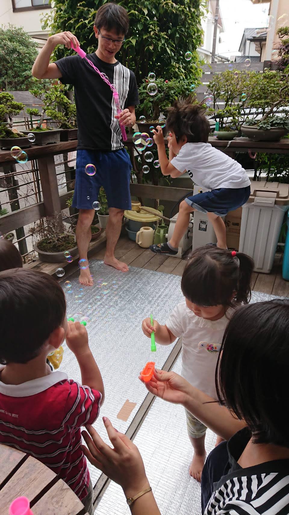 兄:恐竜のマネをしてシャボン玉にジャンプ!面白い写真が撮れました。