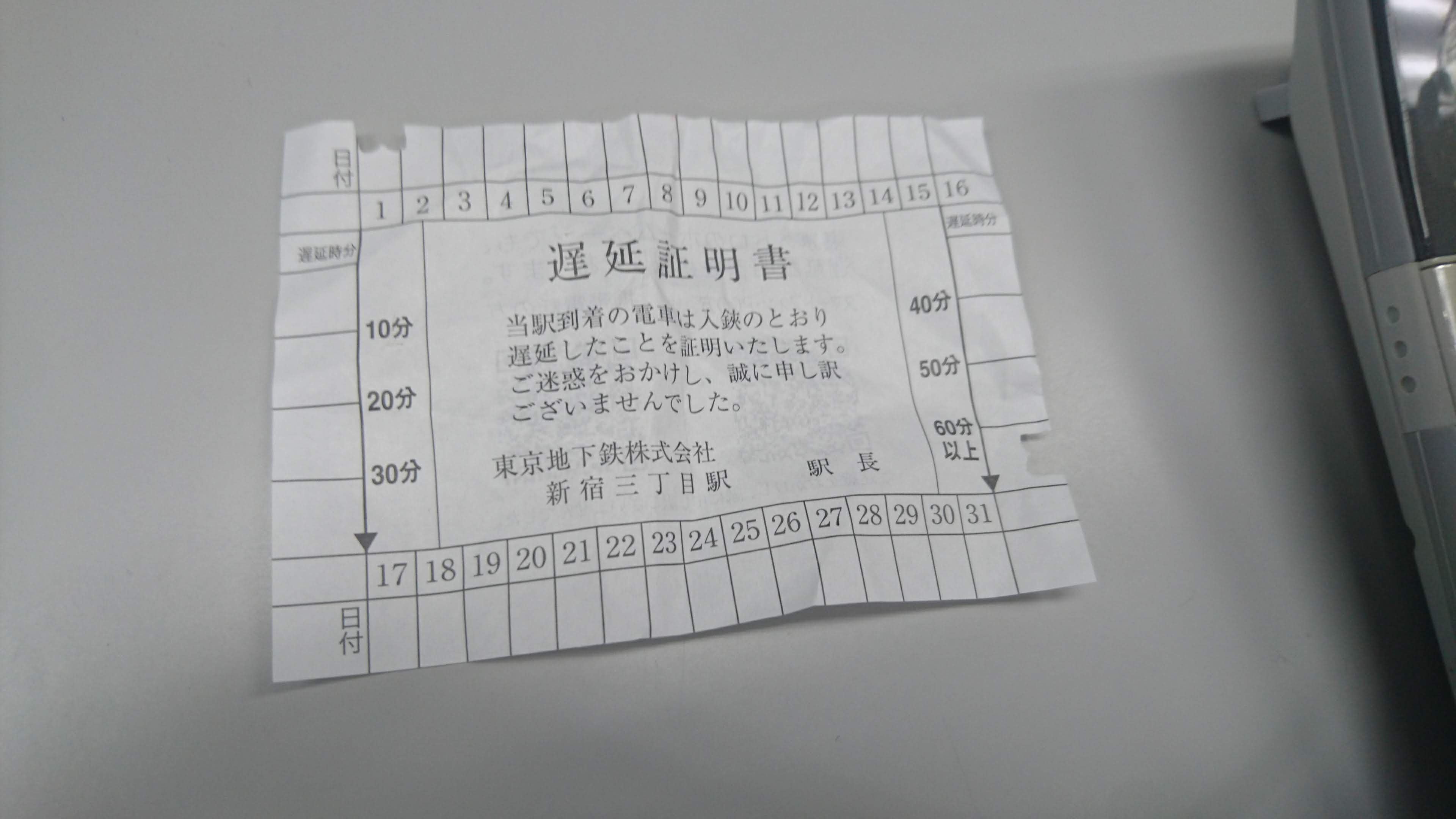 遅延証明と無縁の生活が私には合っているようです。