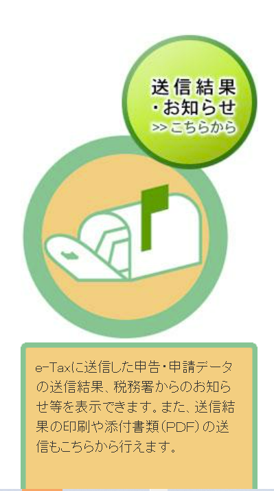 「送信結果・お知らせ」をクリックするとメッセージボックスを確認するこができます。