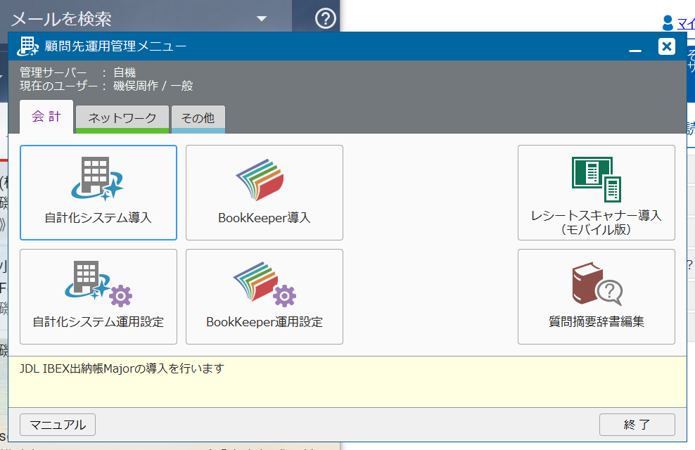 その後、JDL会計を開こうとすると、「インポートしますか?」と聞かれるので「Yes」とします。