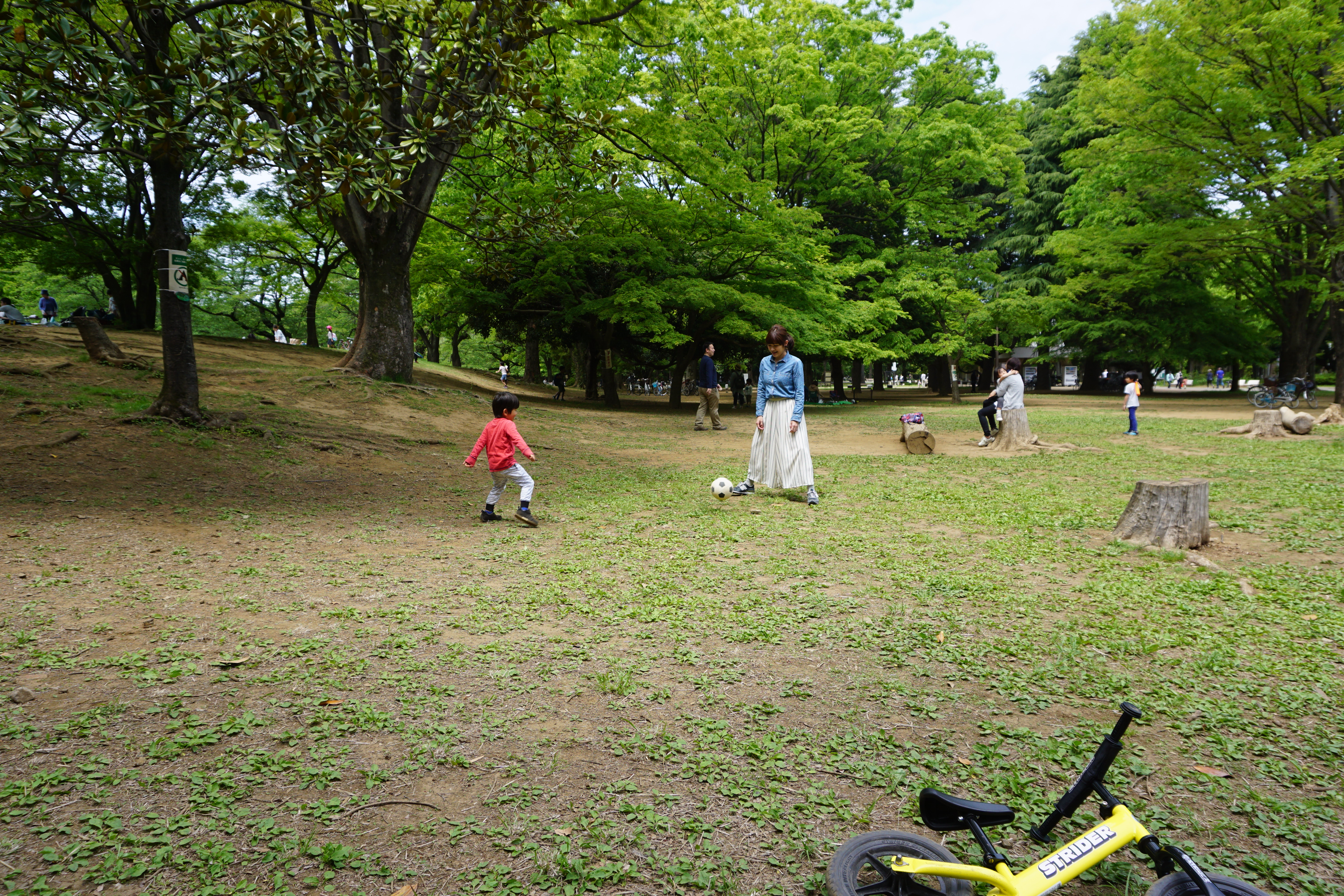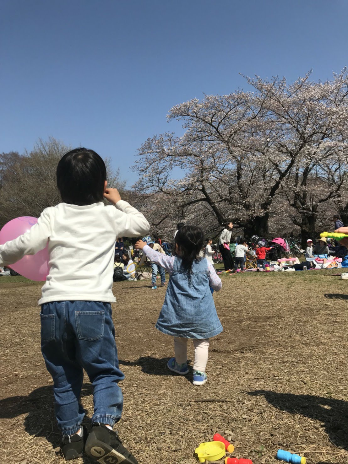 お花見する人が多く広場でストライダーしたりボール遊びすると、ぶつかったりする可能性がありますね。お花見シーズンでのストライダーは厳しいかもしれません。