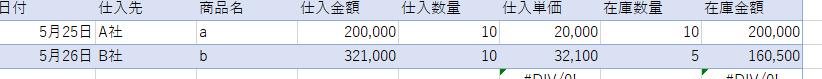 ただ、管理としては、さきほどのexcelのように1回1回の仕入ごとに在庫を管理したほうが、こまやかではあります。