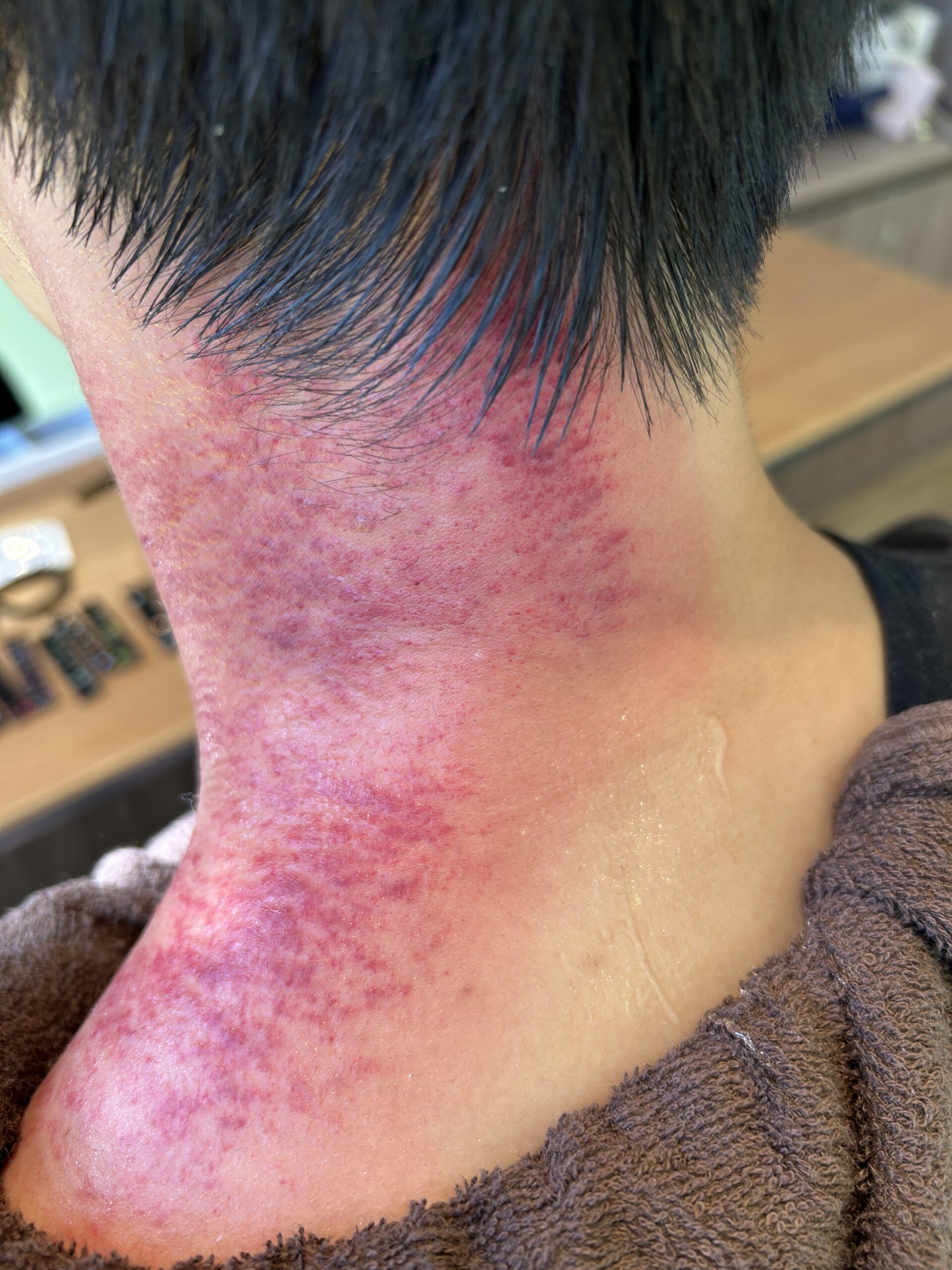 ただ、術後の皮膚の痛みは感じません。あれだけこすっているのに、首のあたりにかすり傷のようなものはありません。