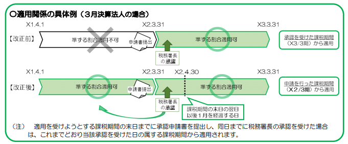 ・適用を受けようとする課税期間の末日までに承認申請書を提出(従前どおり)