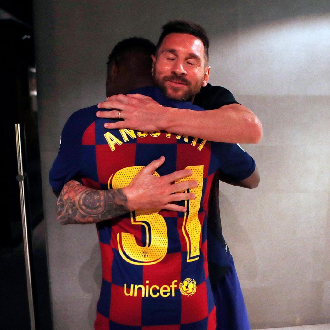 ※バルサのインスタグラムから。メッシと抱擁するアンスファティ