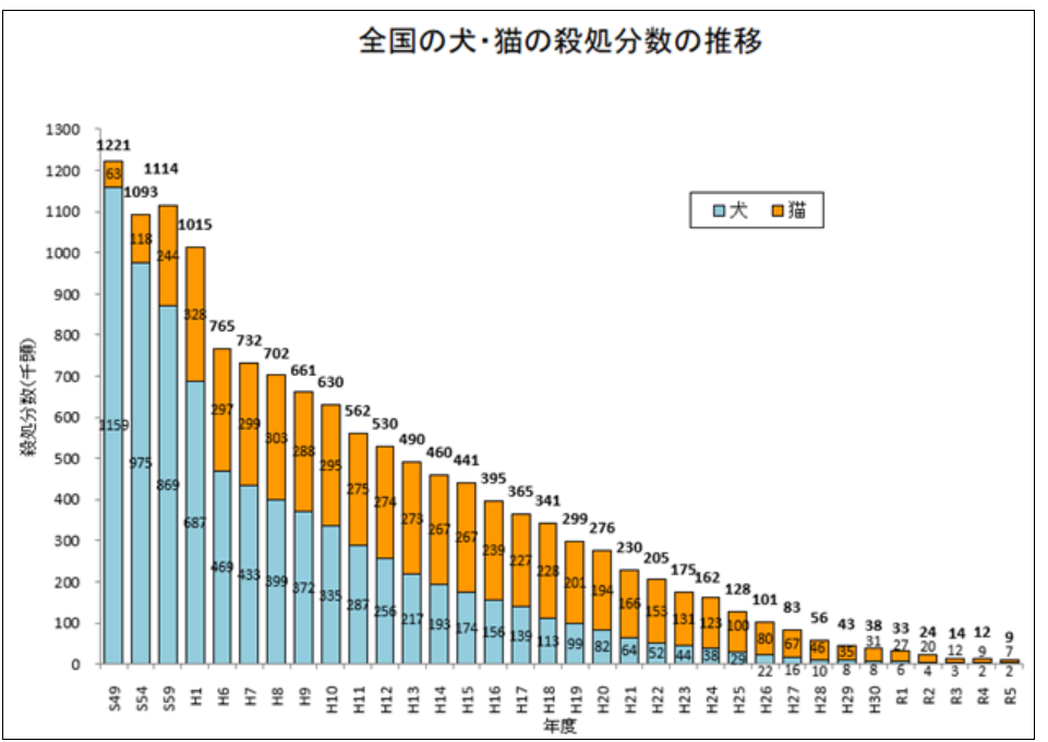 減ってはいますが直近でも2,000頭の犬が殺処分されているのが現状。