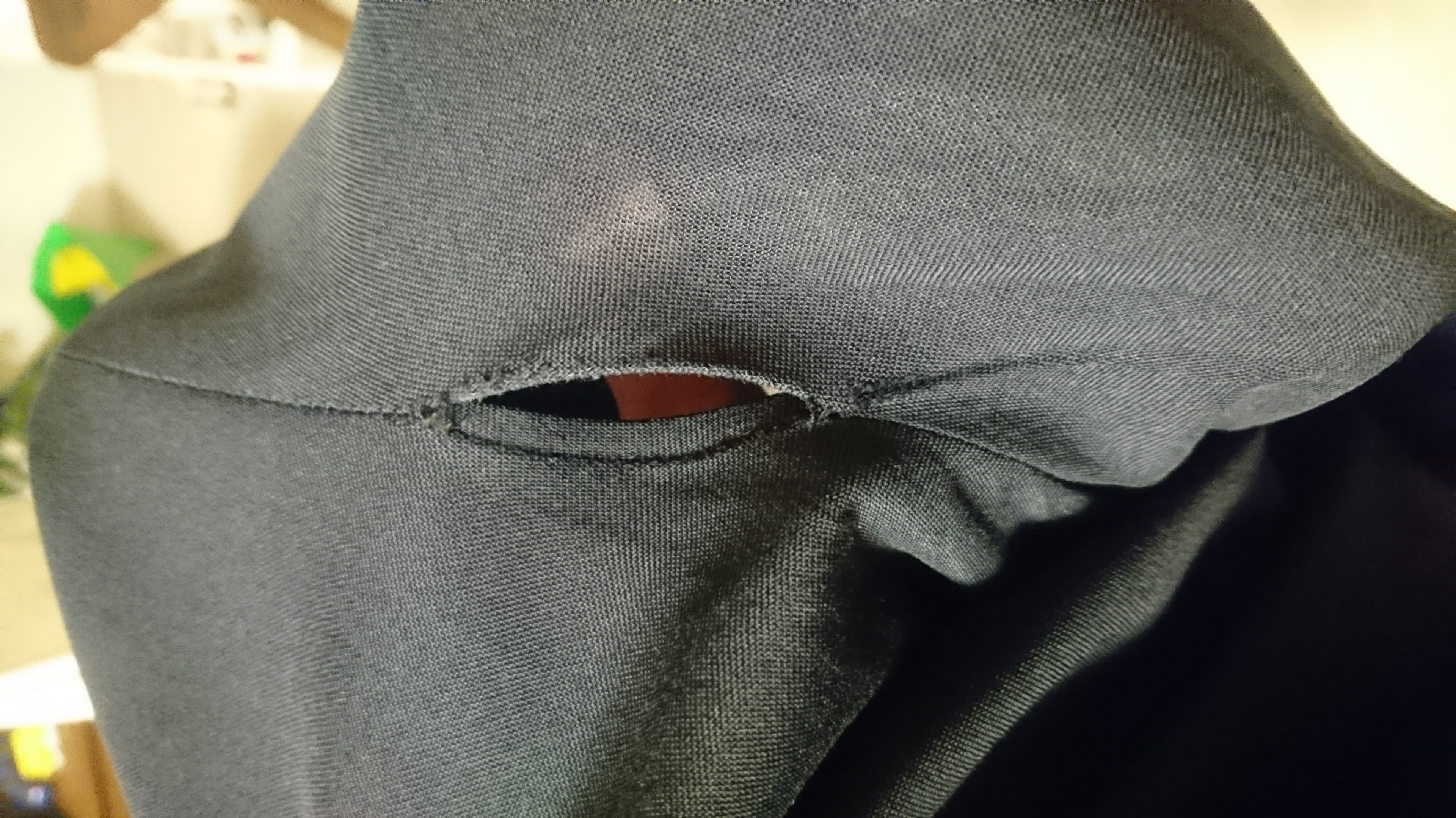 2011年から着ていたスーツのお尻が破けました。長いことお疲れ様でした。