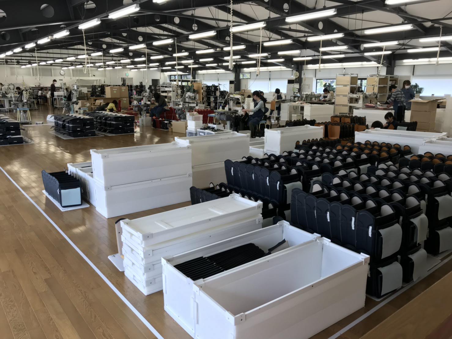 ミシンの音が聞こえたり、金具を打っている音が聞こえます。
