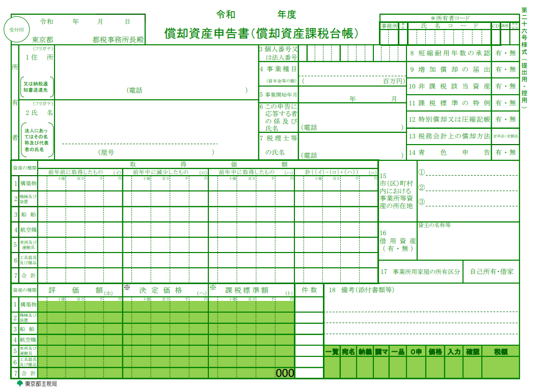 確定申告書に固定資産を計上する箇所があります。