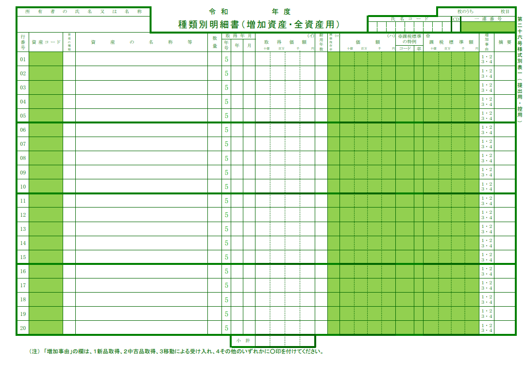 償却資産税申告書に記載すること